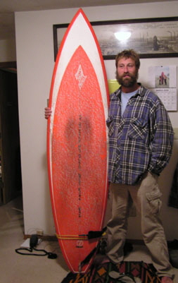 7’4” SQUARE TAIL BIG GUY TRI, SINGLE CONCAVE TO VEE BOTTOM