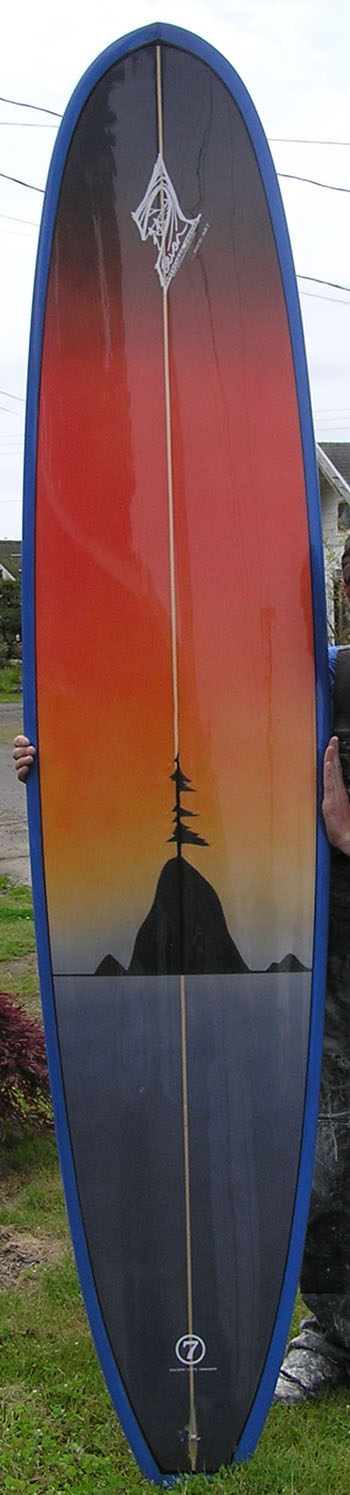 BLUE OPAQUE BOTTOM WITH NORTH COAST AIRBRUSHED MURAL ON DECK, BLACK PINLINE