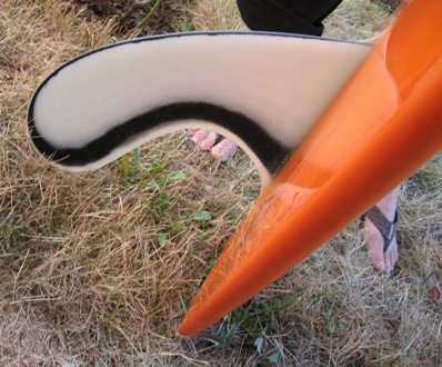 10 0Z VOLAN CLOTH WITH ORANGE TINT, CUTLAPS AND DECK AND FIN PATCH.