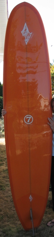 9’6” CLASSIC LONGBOARD. SQUARE TAIL,TEARDROP NOSE CONCAVE TO VEE BOTTOM.
