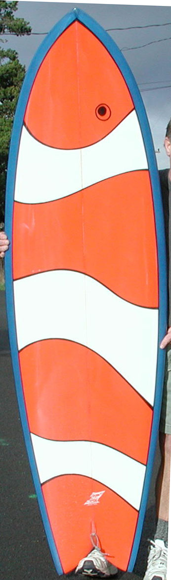 BLUE TINT BOTTOM WITH CLOWNFISH AIRBRUSHED DECK AND BLACK PINLINES
