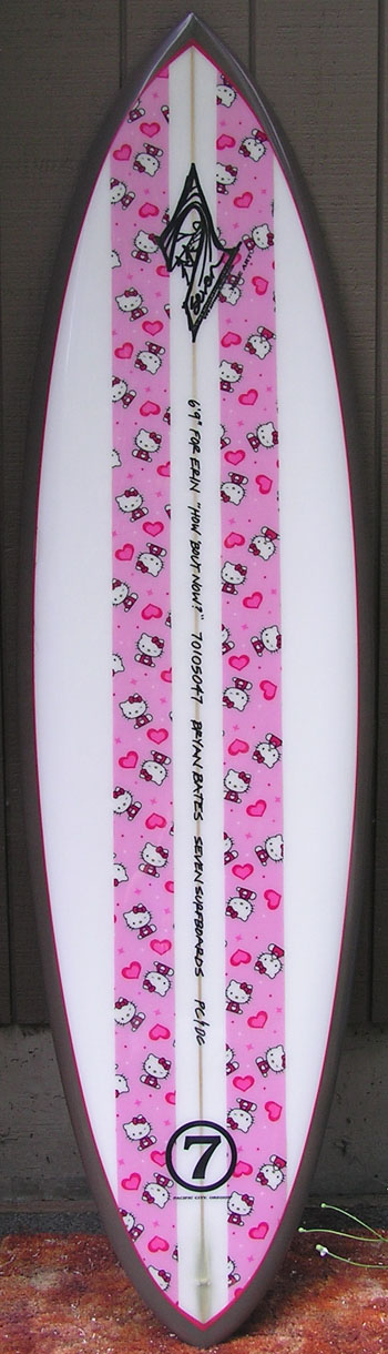 CHOCOLATE OPAQUE BOTTOM, INLAID HELLO KITTY FABRIC ON DECK WITH PINK PINLINE
