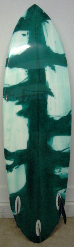 ABSTRACT RESIN TREE ON BOTTOM. CLEAR DECK WITH GREEN PINLINE ART.