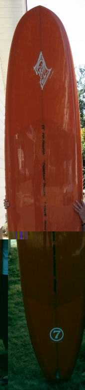 9’6” CLASSIC LONGBOARD. SQUARE TAIL,TEARDROP NOSE CONCAVE TO VEE BOTTOM.